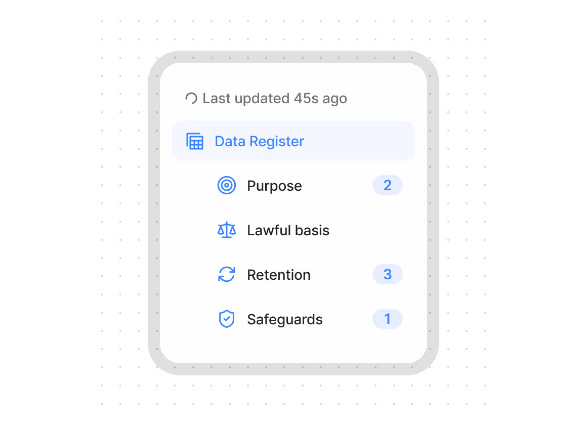 Trust Keith acts as your single source of truth for privacy records — keeping your RoPA, Risk Register, and supporting assets always-up-to-date, accurate, and audit-ready at all times.